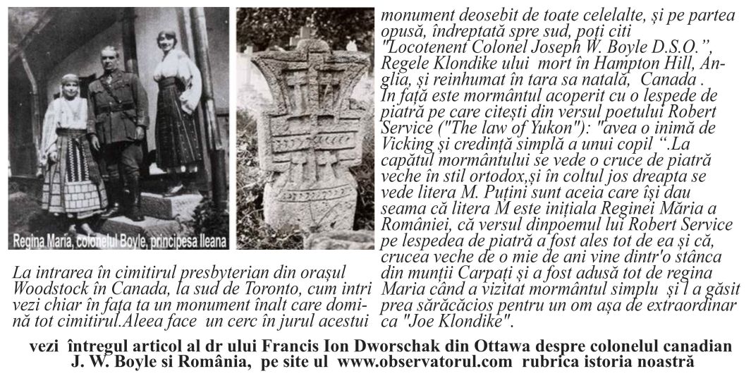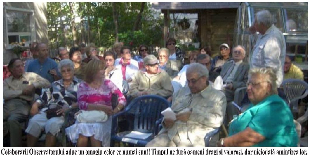 12/2/2004, Aniversare la Observatorul In sala spatiosa a tipografiei Centra Web din Toronto in care se tiparesc ziarele in multe limbi ale globului pamantesc, ne-am intalnit colaboratorii si prietenii cenaclului „Observatorul”. Sala mare cu care suntem familiarizati mai demult, desi plina de masini, isi are pulsul ei de viata si noua ne vorbeste in graiul ei. Decoratia tipografiei era cea de sarbatoare. Baloturile si sulurile uriase de hartie ne-au starnit imaginatia de a le folosi in buna masura ca decor. Din ele s-a alcatuit masa de prezidiu, a fost afisata o expozitie cu fotografii si reproduceri de harti si documente ale momentului Unirii din 1918 , precum si a evenimentelor premergatoare. Erau 120 de imagini de la Alba Iulia si Bucuresti, copii dupa acte si decrete din vremea respectiva, harti ale Basarabiei si Transilvaniei. Pe alte baloturi erau carti de istorie, cartile nou aparute, reviste, Intr-un colt , parca simteai ca ceva te cheama si te invaluie o calda lumina, era amenajat „coltul” romanesc, iar langa el, asa cum ii statea bine, cel canadian. Obiecte din Romania – vase de ceramica, costume populare, cergi, imagini din Romania, ne vorbeau cu caldura, iar cele canadiene parca ne intindeau bratule sa ne cuprinta. Erau afisate harti cu ROMANIA MARE , steaguri romanesti, iar pe masa „prezidentiala” painea cea cunoscuta din stramosi, facuta de seniorul colectivului, d-l Ovidiu Creanga, paine facuta in vatra, si purtand cele doua steaguri ale celor doua tari ce le purtam in suflet, Romania si Canada. Alaturi de paine era un vin special, trimis de pe pamantul frant din trupul Romaniei, din Basarabia cea plina de suferinta si acum de mari framantari. Scriitorul si poetul Iurie Colesnic care ne-a onorat cu prezenta in luna trecuta, ne-a trimis acest vin ca sa simtim gustul pamantului din trupul frant tarii noastre. Dupa ce participantii au consultat interesantele materiale afisate, dupa ce au schimbat impresii unii cu altii, bucurandu-ne, nu numai de regasirea intre noi, dar si de prezenta prietenoasa a d-lui Consul General Nicador Teculescu, s-a inceput programul propru-zis. Deschiderea a facut-o d-l Dumitru Popescu anuntand programul. La prezidiu au luat loc veteranii grupului nostru : D-l Nicolae Suciu, D-l Ovidiu Creanga, D-l Petre Suba si d-l prof. Silvestru Moraru. Veteranii nostri s-au prezentat pe rand.; D-l Constantin Suciu, venit in Canada de 35 de ani, din Rupea, de langa Brasov, nepot din celebra familia Suciu care a facut parte din comitetul de initiativa la 1 Decembrie 1918, din Transilvania, aviator in al doilea razboi mondial, decorat pentru fapte de vitejie, ne-a povestit evenimente pe care le-a trait in timpul razboiului. El ne-a adus ordine si medalii si o harta a fostei Daciei. D-l Petre Suba, venit din 1948 in Canada, ne-a relatat pe scurt viata plina de multe framantari, dar si de multe satisfactii din lumea noua. E un roman ce a pastrat o adevarata comoara de valori spirituale si care daruieste $1.000 pentru o slujba in memoria victimilor comunismului. Despre D-na si D-nul Suba a scris recent cu deosebite elogii si ziarul de limba engleza „The Mirror” din Toronto. D-l Ovidiu Creanga, Mos Bodranga al nostru, cel hatru si plin de glume, nascut pe pamant basarabean, animat de lupta pentru a sprijini Basarabia, cu un suflu tanar, desi ne marturiseste ca are 83 de ani, a indemnat asistenta sa fie de acord cu o adeziune de sustinere a fratilor nostri de dincolo de Prut care in aceste zile lupta impotriva federalizarii tarii si a apropierii de Rusia. D-l prof. Silvestru Moraru ne-a vorbit despre actul Unirii, dar mai ales de momentele pregatitoare. Ca profesoara, tare mi-ar fi placut sa fie prezenti elevii mei de la scoala. Nici o lectie de istorie nu ar fi fost mai clara si nici una nu le-ar fi dat mai multe cunostinte, decat prezenta la acest cenaclu. Cu o voce foarte bine timbrata, blana si seducatoare, mai mult vorbind decat citind, cu argumente logice si cu o foarte buna documentare, ne-a dat impresia ca suntem intr-o aula universitara, caci nu de putine ori, gandul ne-a trimis acolo in timp ce il ascultam. Cu totii l-am urmarit cu mult interes. Au fost si cateva momente deosebit de emotionante. Pe muzica “Ruga pentru Timisoara” si „Pune tata steag la poarta” in interpretarea lui Tudor Gheorghe, s-a purtat momente de reculegere in memoria eroilor neamului romanesc.. Cu totii am rostit rugaciunea „Tatal nostru”. Veteranii nostri au aprins fiecare cate o lumanare intr-un sfesnic si acestea au ars in tot timpul intrunirii noastre. Pentru ziua Romaniei am cantat imnul national. Ne-au recitat din creatiile lor dedicate unirii ; D-l Ion Segarceanu doua poezii si D-l Stelian Ilie Constantin iar D-na Veronica Lerner Pavel o frumoasa oda pentru limba romana.. Ca de fiecare data, D-l Dumitru Popescu a facut prezentarea cartilor si revistelor primite la „Observatorul”. A fost prezentat si Sasi Vuscan, tanarul compozitor si muzician, fondator al grupului Jais din Timisoara, venit de curand in Canada. Sasi va lansa aici in Toronto, noul lui CD –"Transylvanian christmas songs" melodii ascultate in premiera de cei prezenti. Si ca de fiecare data, cenaclul nostru s-a incheiat cu bunatati stropite cu vinuri romanesti. S-a cantat multi ani pentru cei nascuti in luna Decembie ; Stelian Ilie si Doamna Medan. Am cantat colinde romanesti si din Basarabia, D-l si D-na Medan fondatorii corului”Armonia” fiind initiatorii si solistii corului ad-hoc. Ziua de 1 Decembrie, ziua nationala a tarii noastre, a fost si pentru noi o sarbatoare, chiar daca ne aflam peste mari si tari. Dar distanta in spatiu, nu inseamna si distanta in suflet. Iubim si noua noastra tara care ne-a primit cu bratele deschise si pentru care nu contam numai din punct de vedere contabil, dar nu ne desprindem nici de Tara-Mama. Ziua de 1 Deecembrie poarta aura unei zile de mare gratie, care a dat nastere unor sentimente coplesitoare. Ea este aleasa ca ziua nationala a Romaniei car