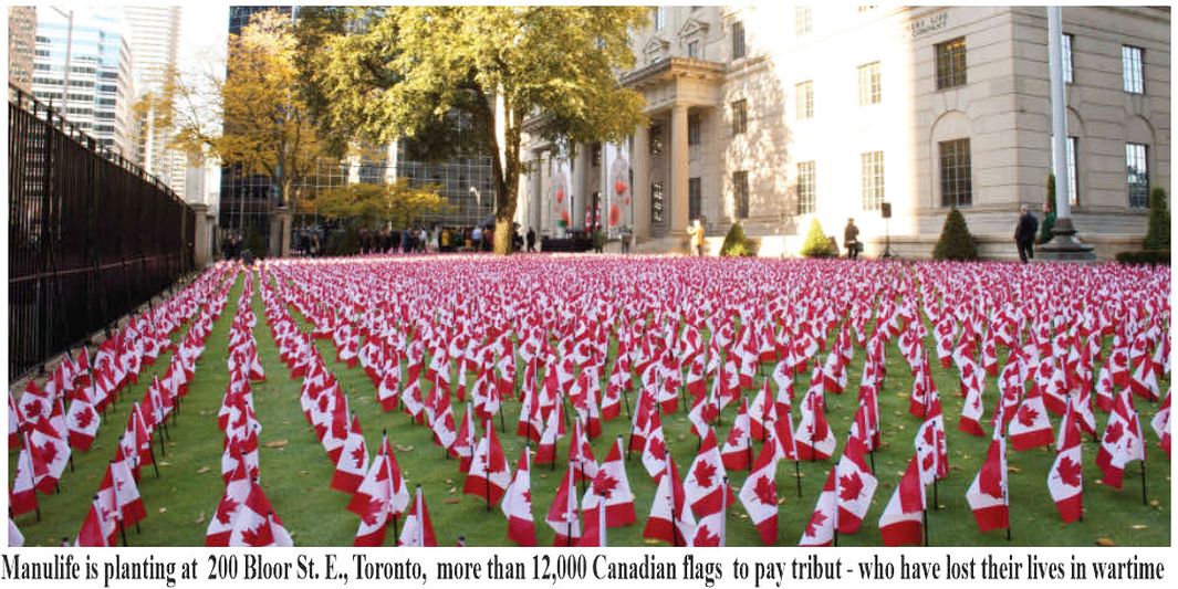 11/4/2025, Veterans’ Week and Remembrance Day - For the eleventh consecutive year, Manulife ( 200 Bloor St. E., Toronto, ) is planting more than 12,000 Canadian flags Săptămâna Veteranilor - rememorează sfârșitul ostilităților din Primul Război Mondial, în 1918.