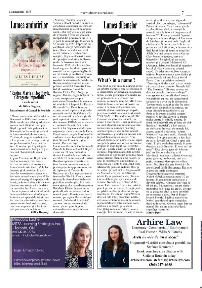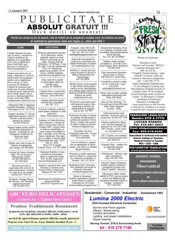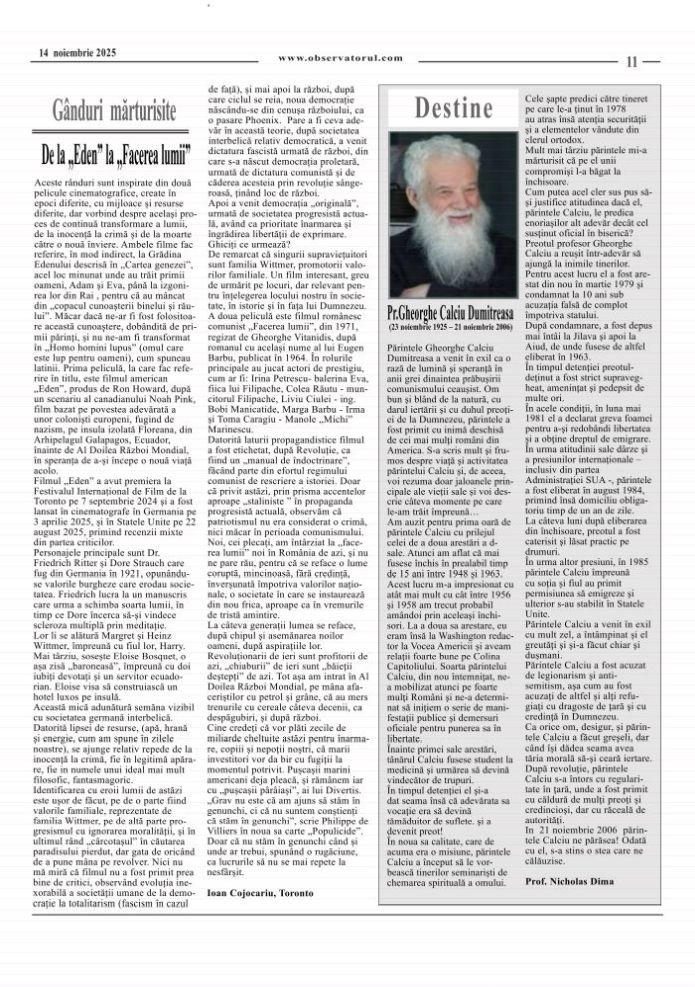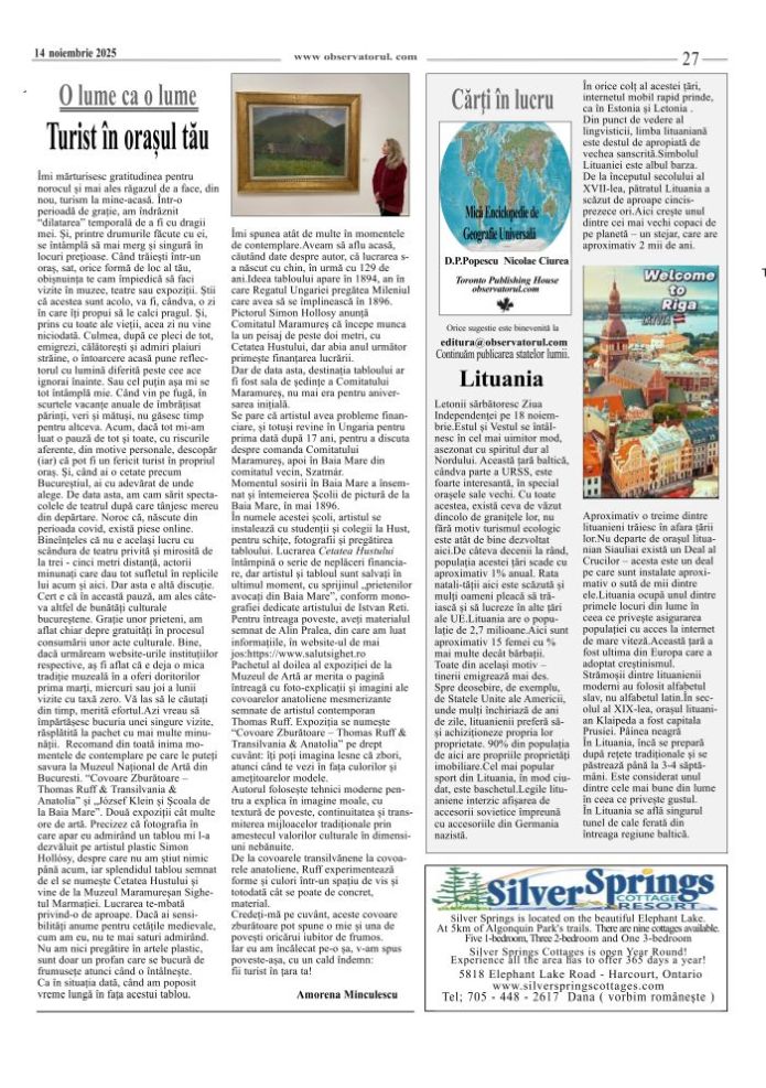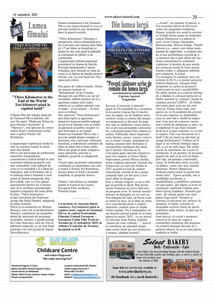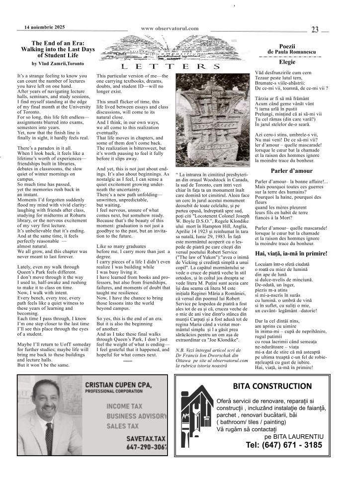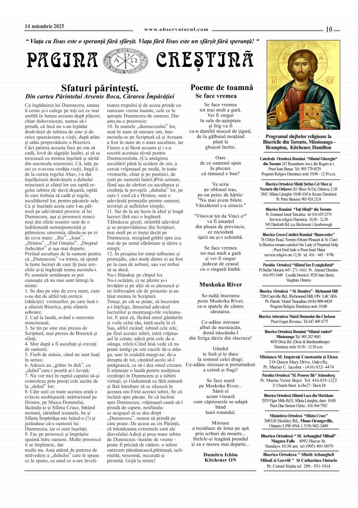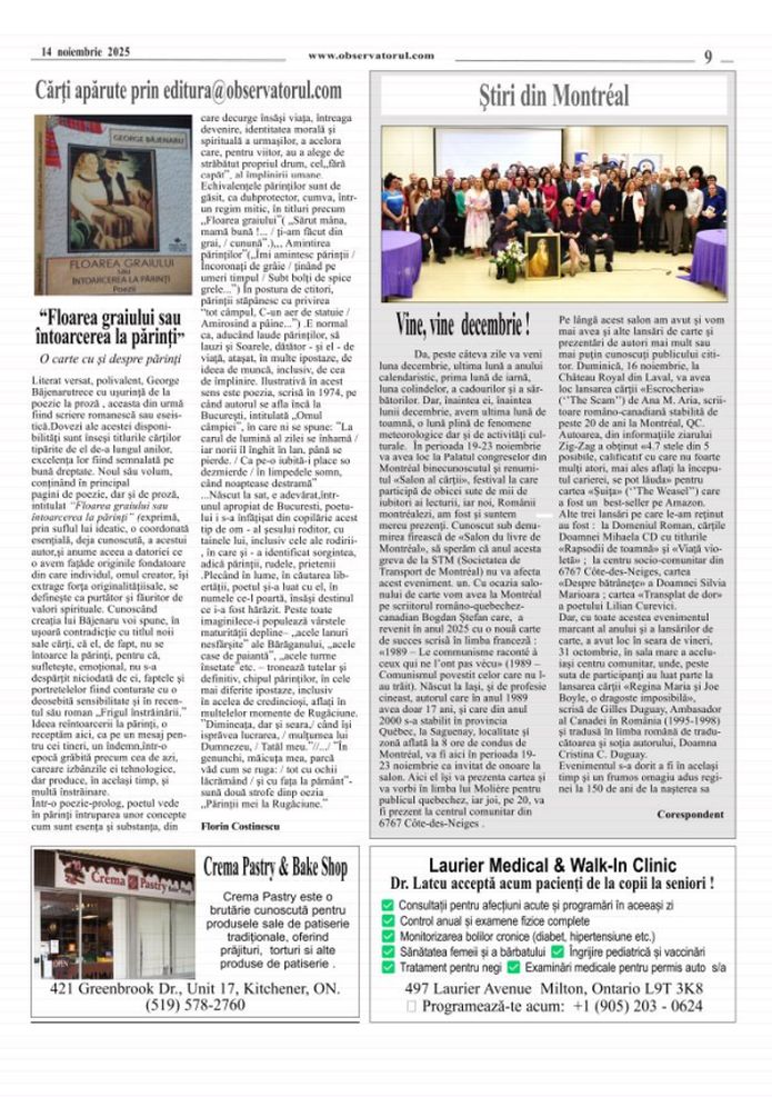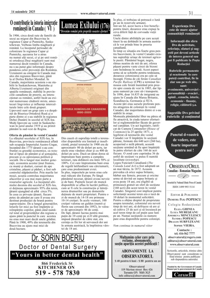 11/12/2025, Observatorul editat si tipărit la Toronto, merge mai departe. Multumiri colaboratorilor, celor care incurajează si sprijină aparitia lui in continuare.