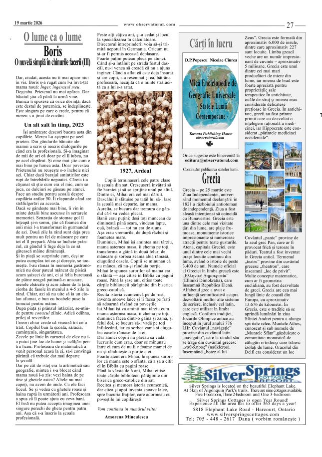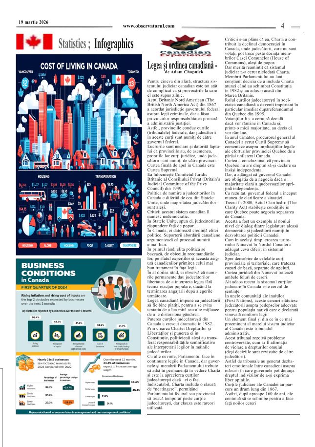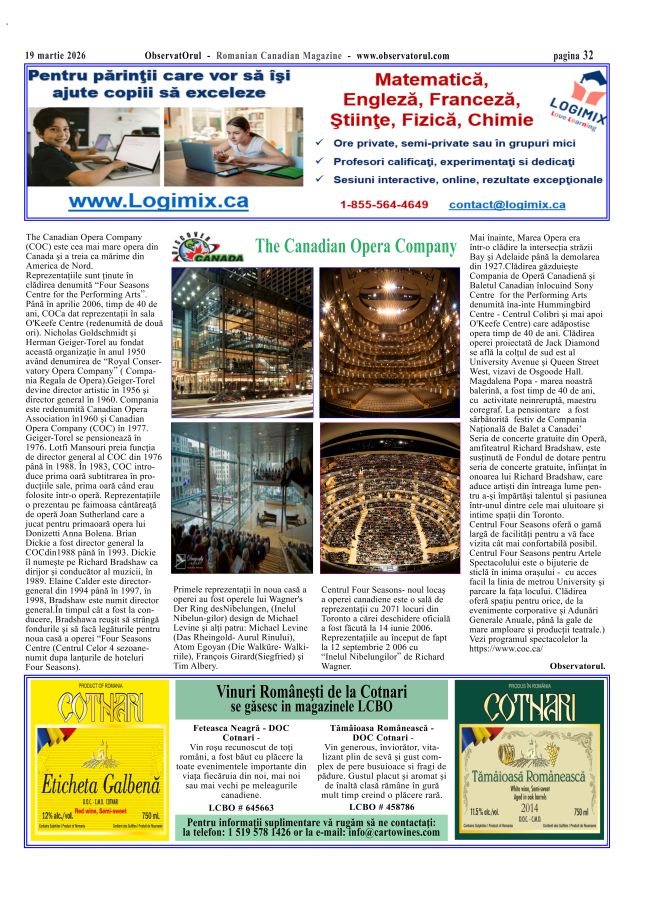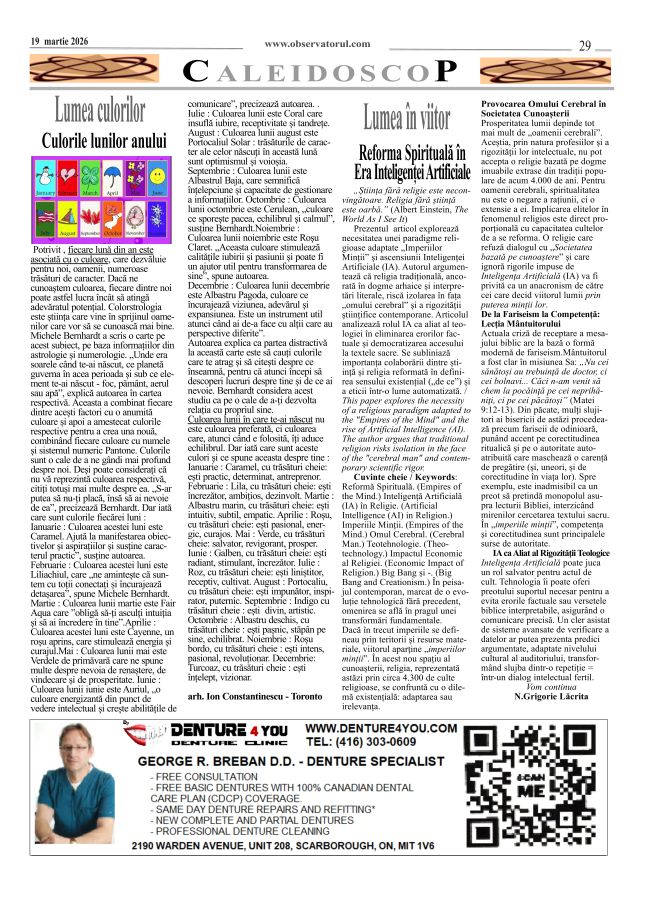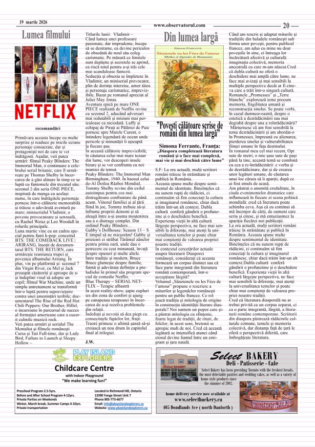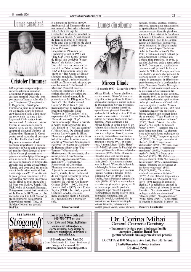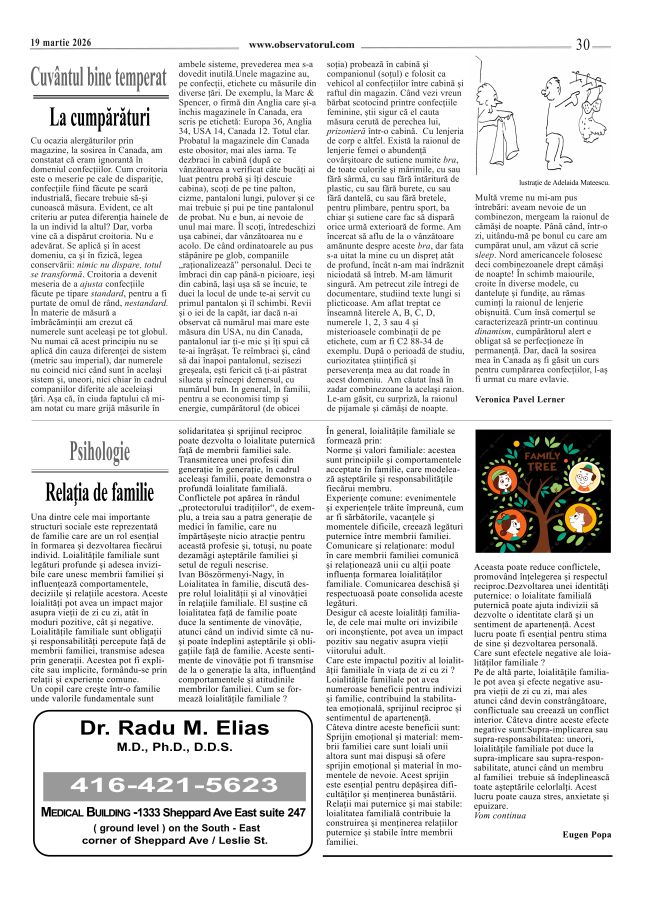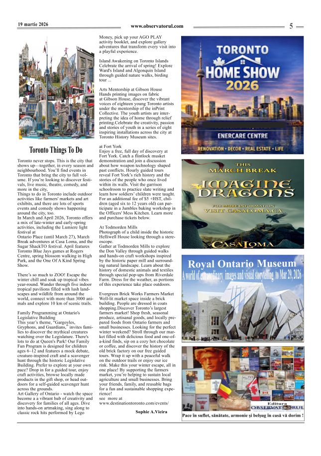 3/18/2026, Observatorul editat si tipărit la Toronto, merge mai departe. Multumiri colaboratorilor, celor care incurajează si sprijină aparitia lui in continuare.