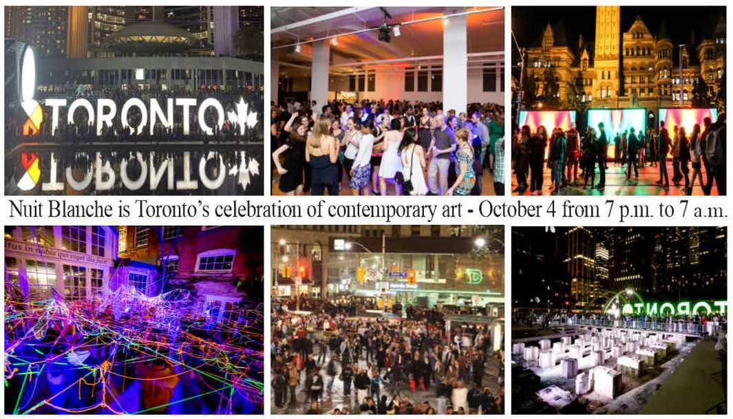 10/5/2025, Nuit Blanche Toronto ( Noapte alba) este celebrarea artei contemporane din Toronto, care durează toată noaptea Pe străzi. locuri publice, sute de artisti de diferite nationalităti participă cu lucrările lor la acest festival al artei contemporane - info Sophie A V