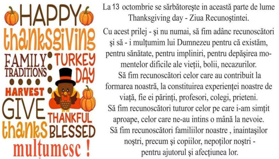 10/9/2025, Thanksgiving - A dărui, a primi, a recunoaște. a multumi ! A sti să primesti este uneori mai important decât să dăruiesti.