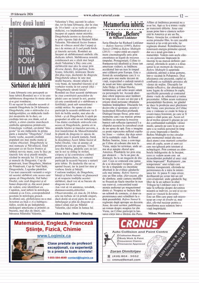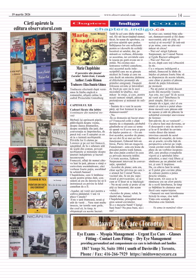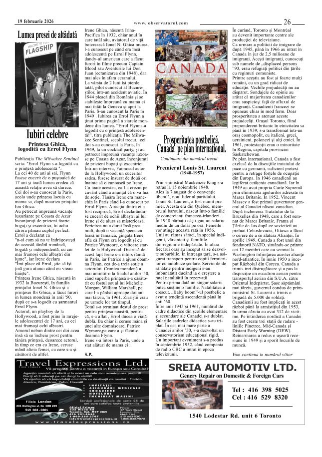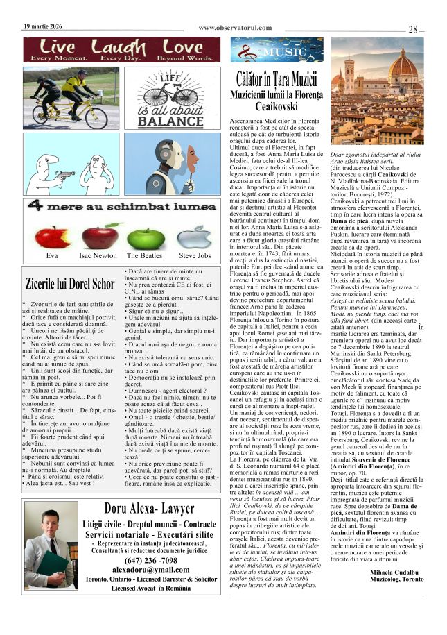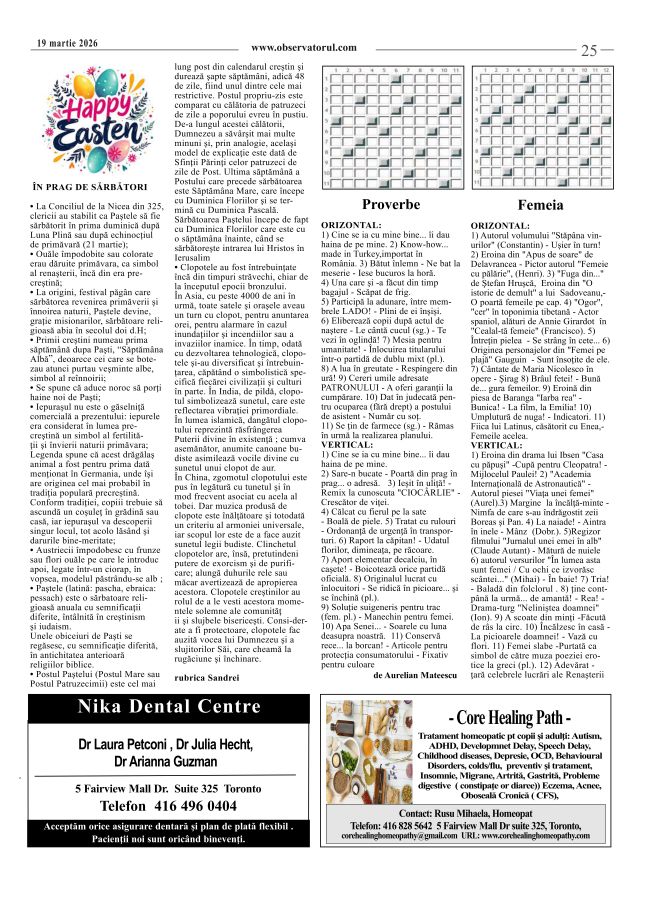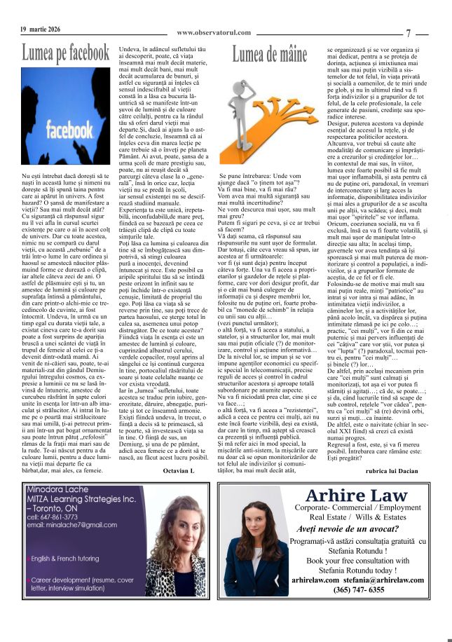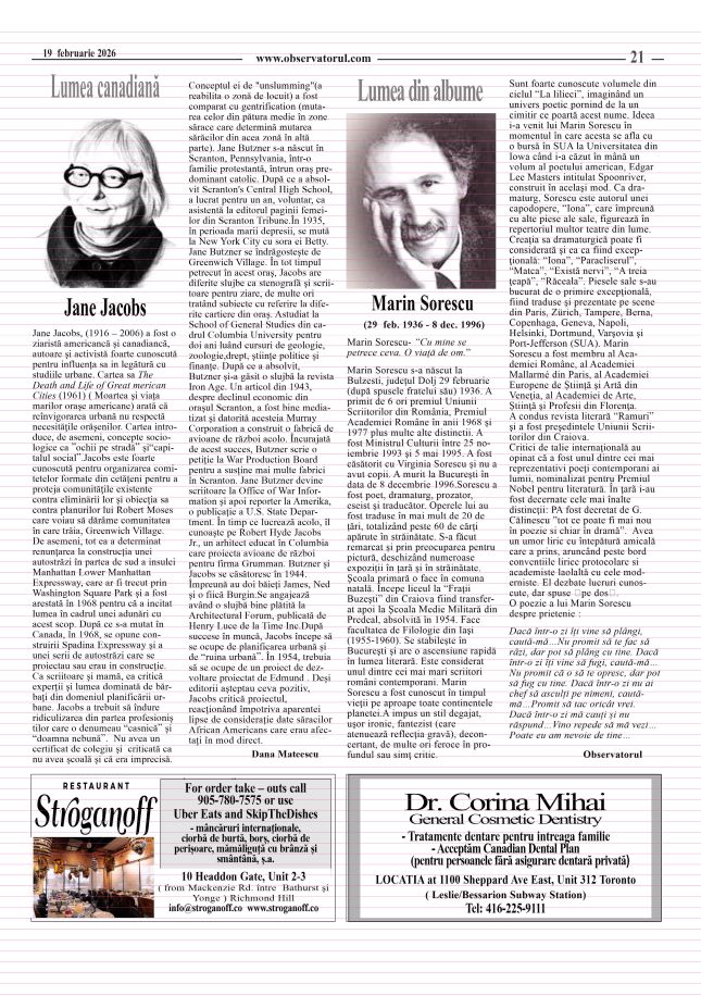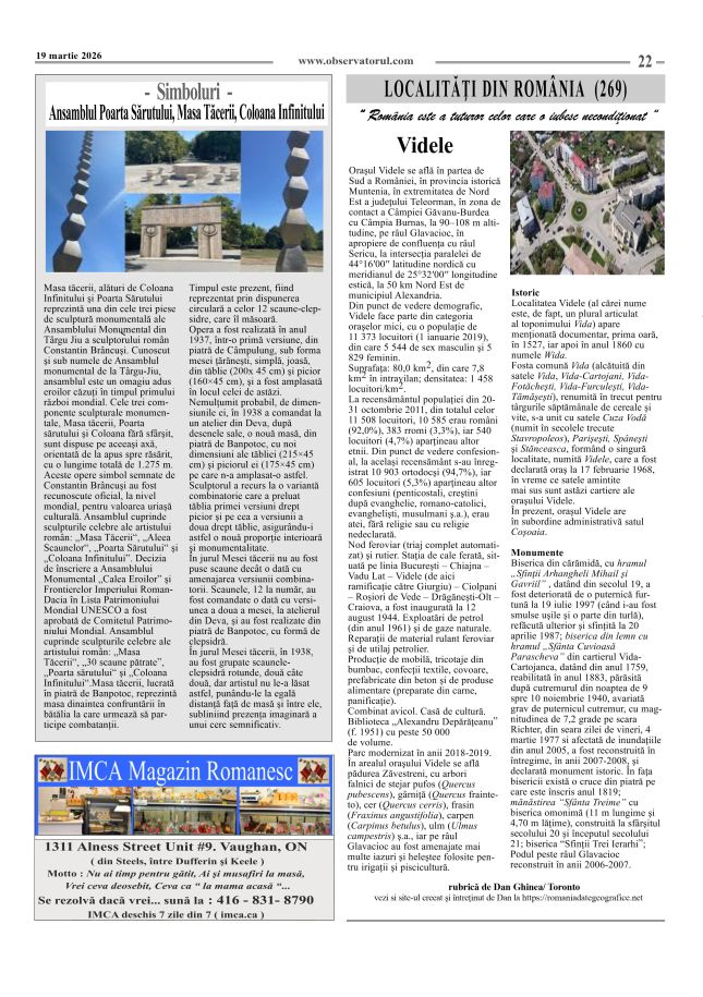 3/18/2026, Observatorul editat si tipărit la Toronto, merge mai departe. Multumiri colaboratorilor, celor care incurajează si sprijină aparitia lui in continuare.