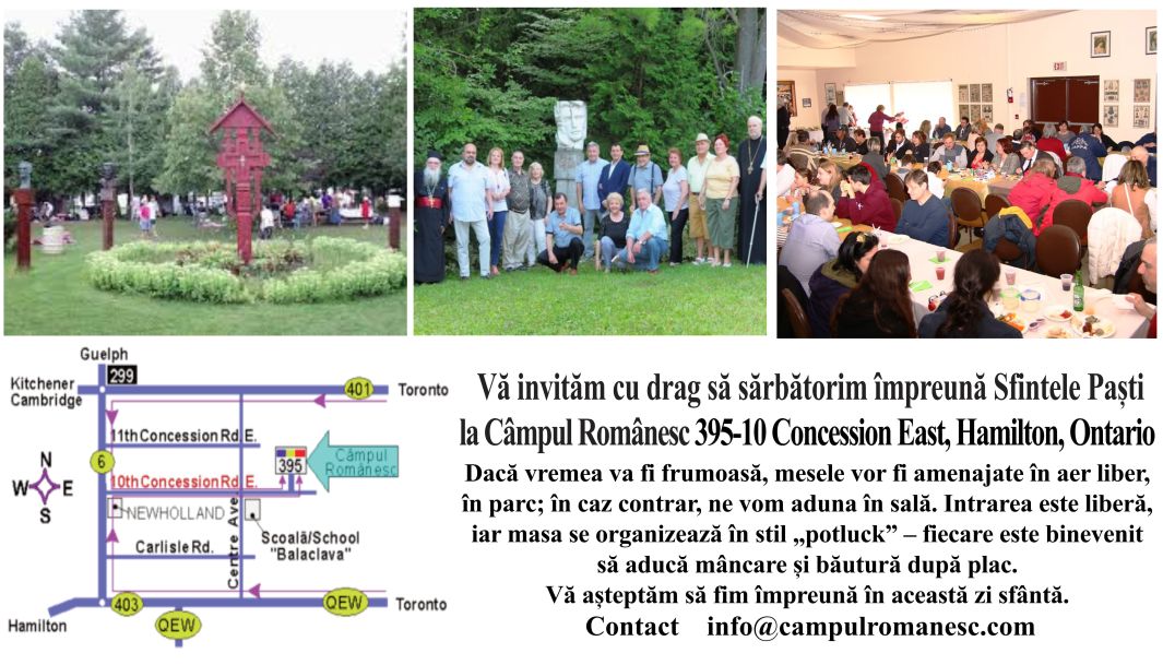 3/25/2026, Invitatie la sărbătorirea Sfintele Paști la Câmpul Românesc de la Hamilton * 70 km de Toronto Adresa ; 395-10 Concession East, Hamilton Ontario