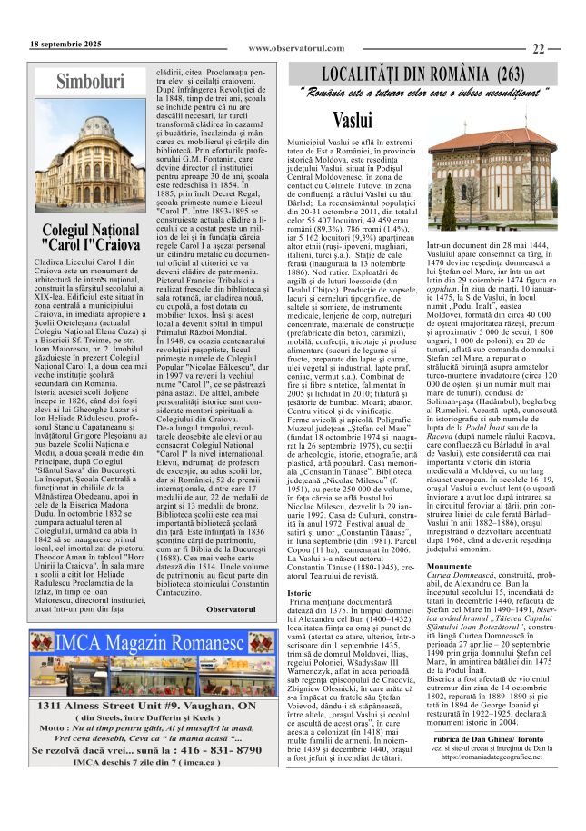 8/14/2025, Observatorul, editat şi tipărit la Toronto, merge mai departe cu acelaşi tiraj şi acelas număr de pagini. Multumiri celor care colaborează şi sprijină această publicatie