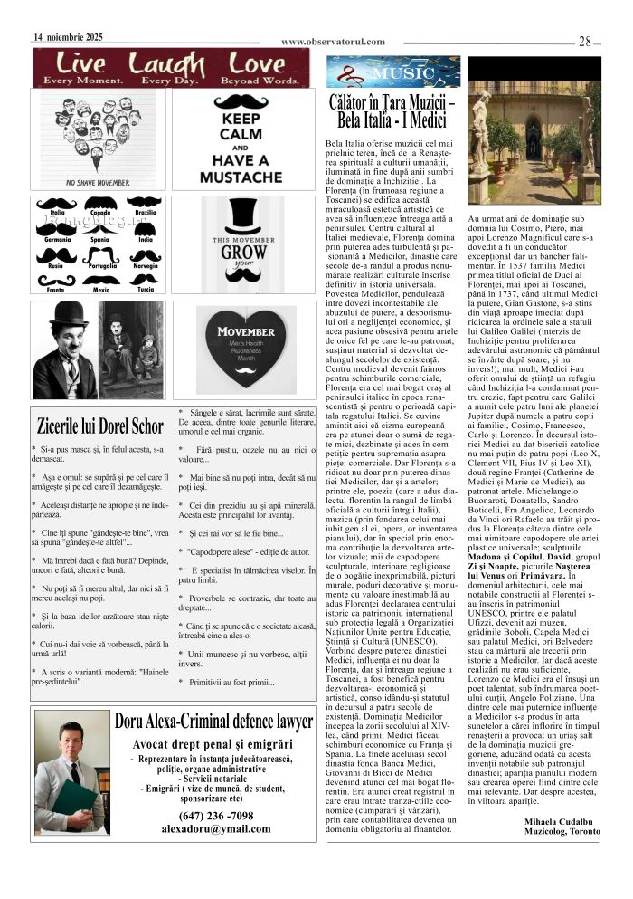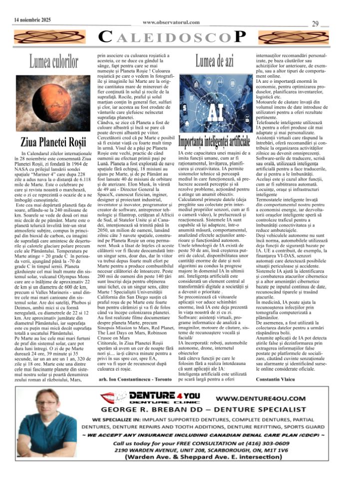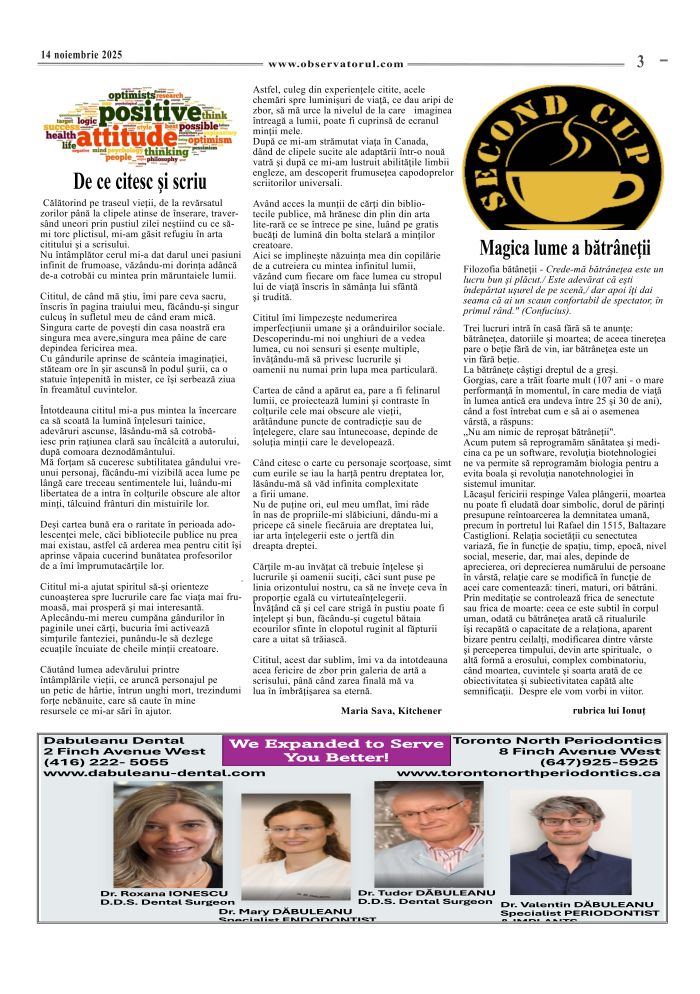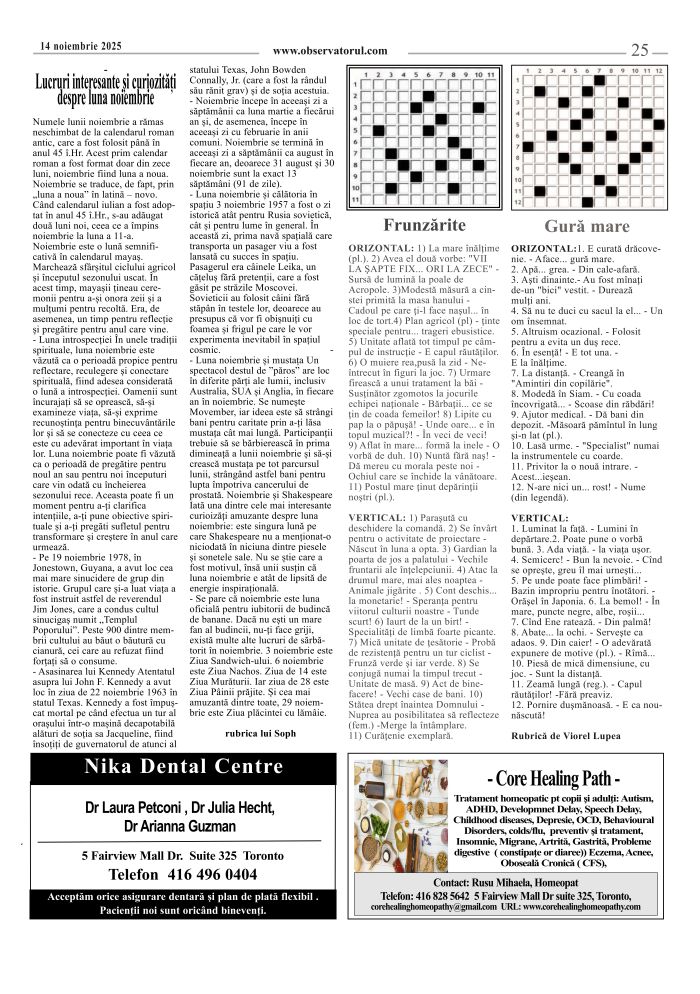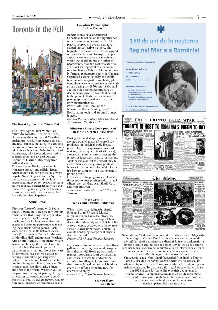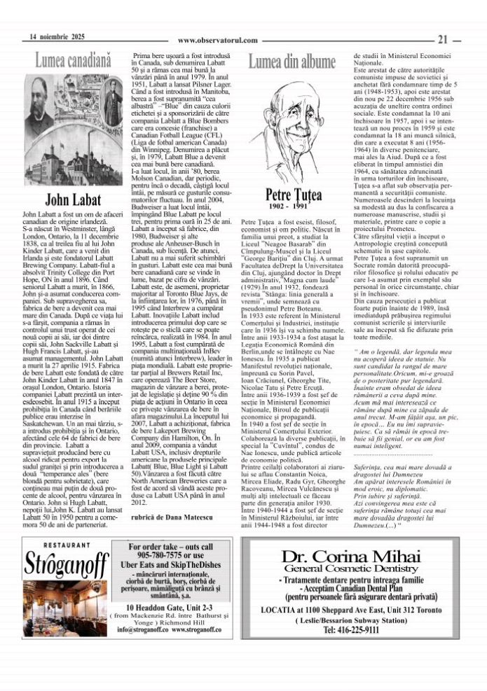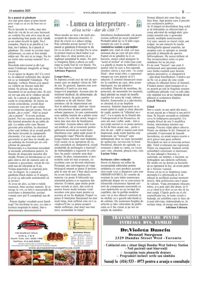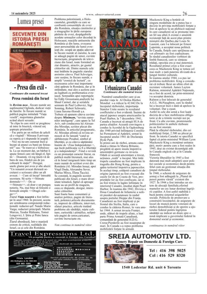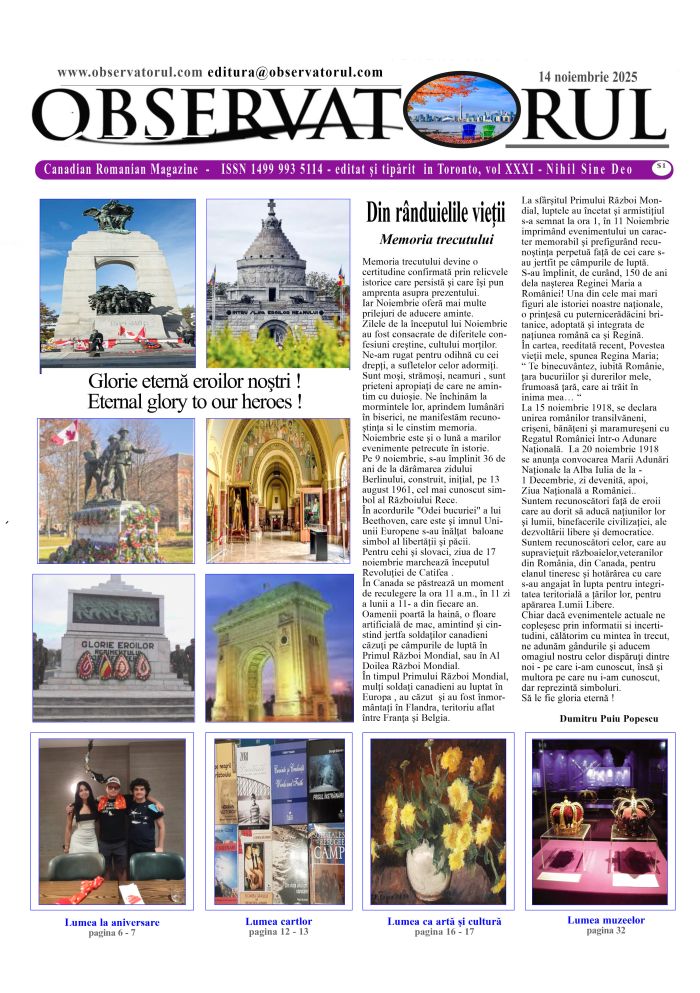 11/12/2025, Observatorul editat si tipărit la Toronto, merge mai departe. Multumiri colaboratorilor, celor care incurajează si sprijină aparitia lui in continuare.
