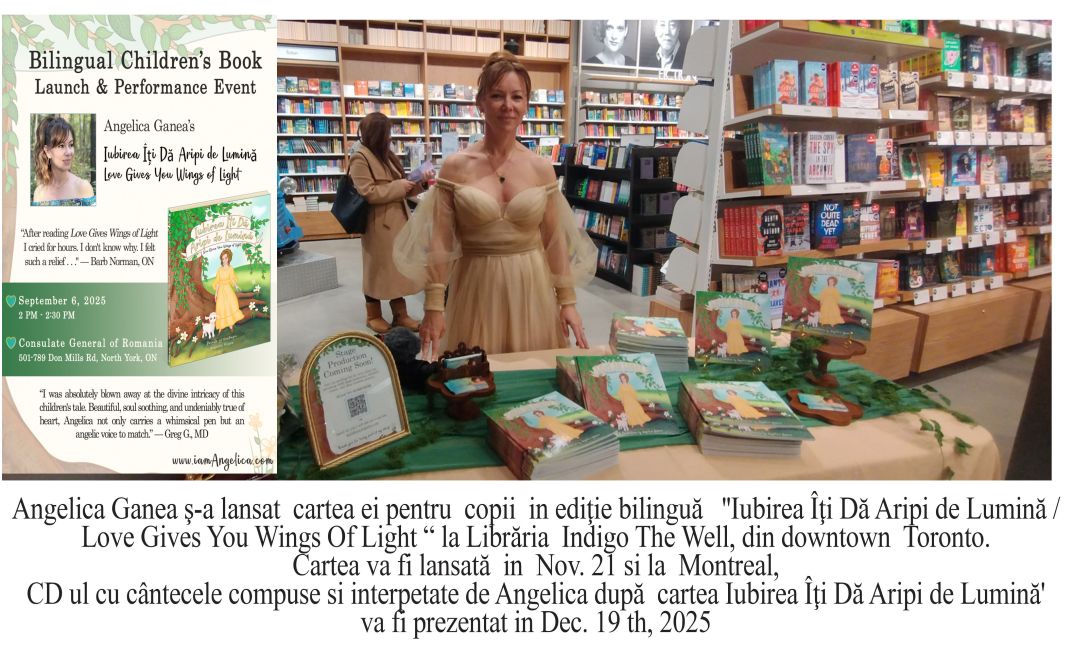 11/17/2025, Angelica Ganea s-a lansat cartea de copii ''Iubirea Îti Dă Aripi de Lumină / Love Gives You Wings Of Light', la Indigo The Well, din centrul orasului Toronto. Angelica Ganea pregăteste un moment muzical de Ziua Culturii - Eminescu din 17 ianuarie 2026 in Toronto