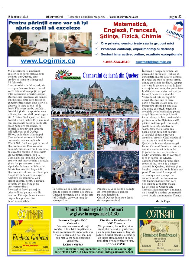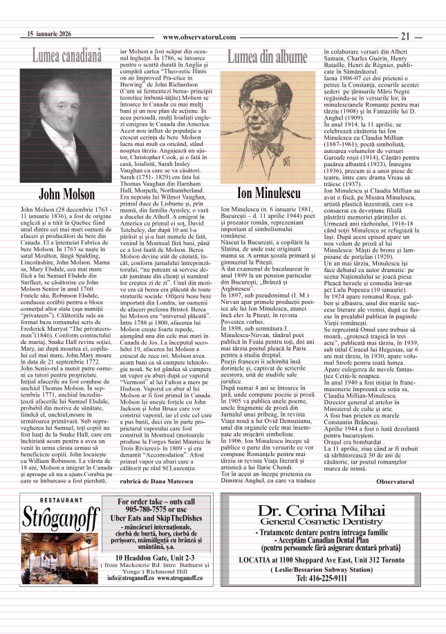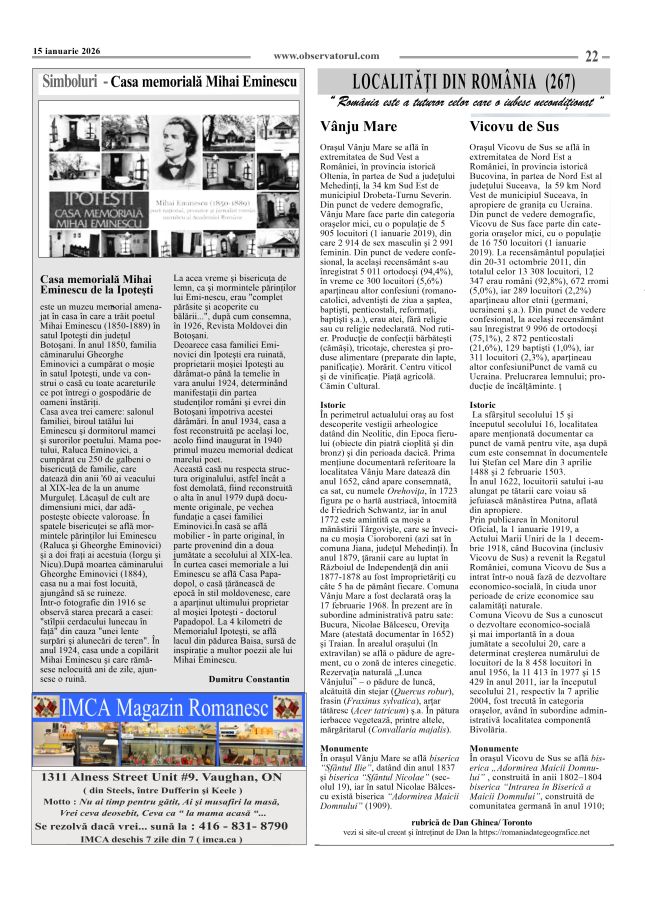 2/2/2026, Observatorul in cei peste 30 de ani de existentă a incercat, după puteri, să promoveze valorile românesti in multiculturalismul canadian Multumiri celor care prin colaborare si sustinere au contribuit la aceste activităti !